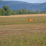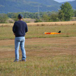 So geschafft, der Erstflug steht an, mein Starthelfer und ich, waren sehr gespannt, die Mühe hat sich gelohnt, nur ein wenig Nachtrimmen und der Name Speedy war Programm :-) Ein gelungenes Sommerloch Projekt !!!