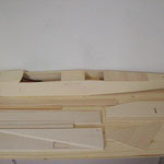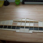 Der Rohbau ist geschafft, jetzt noch mit Folie bespannen, hier wurden die Ruder gleich mit angeschlagen.